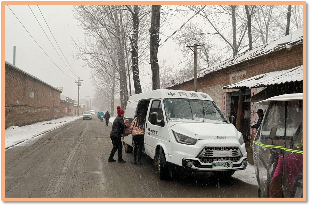 大雪紛飛,鄉(xiāng)村的路上靜悄悄的,在所有人都在家里取暖的時(shí)候,我們的同事開著車艱難的行走著,只為了答應(yīng)客戶的那句,“你放心,我們下午一定送到”。白雪皚皚的路上“客戶至上”的理念抵御著寒冷的天氣,我們默默的念到使命必達(dá),使命必達(dá)!